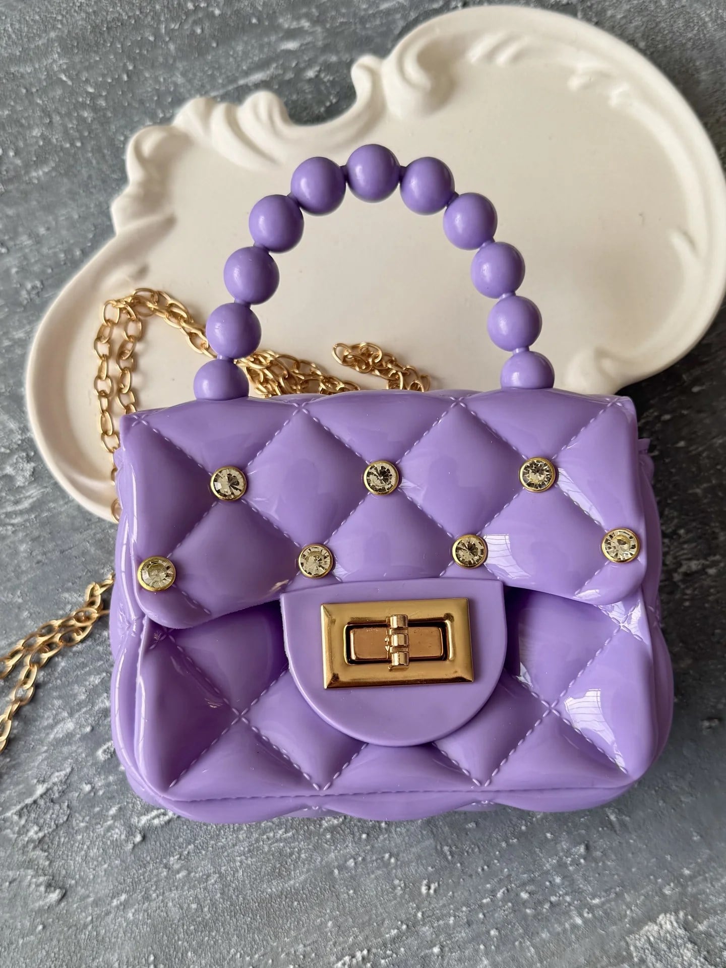 Taş Detaylı Rugan Askılı Çanta - Her anı özel kılın! Çocuklarınız için zarif ve sağlıklı. Toka Kutum Kids Store'da keşfedin.